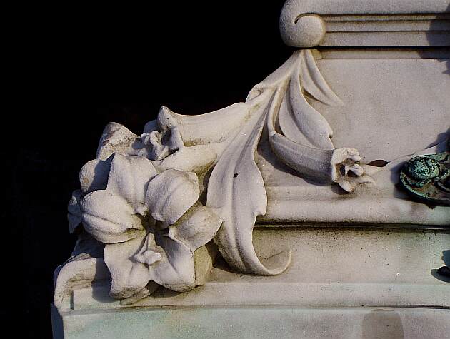 Der Sockel ist mit Blumendarstellungen geschmückt -