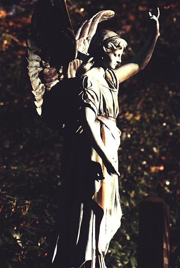 Engel mit mahnend erhobenem Arm. Dieses Standbild befindet sich in der Nähe der Kapelle 7. - Details derzeit leider nicht bekannt. |