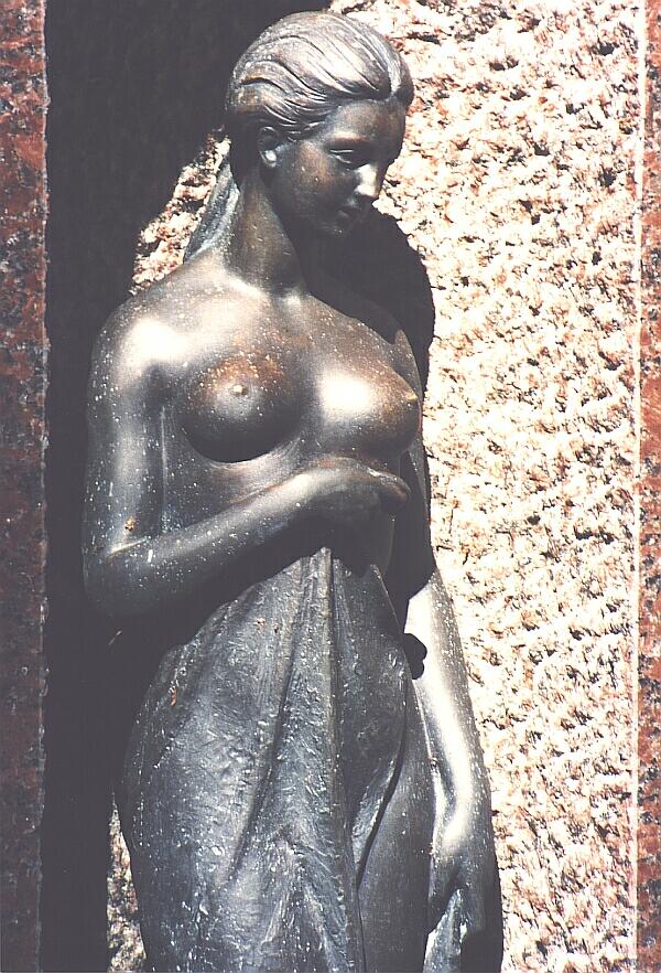 Diese reizvolle Bronzefigur steht in der Mitte einer Familiengrabstätte.