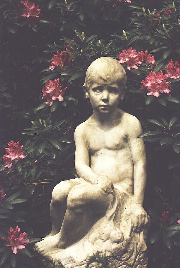 Dieser auf einem Felsen sitzende, nackte Knabe gehört zu einer großen Familien-Grabstätte,