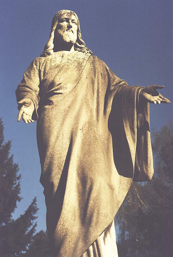 Hier noch einmal eine Gesamtansicht der Christus-Statue aus den beiden vorhergehenden Bildern, diesmal von schräg unten fotografiert. |