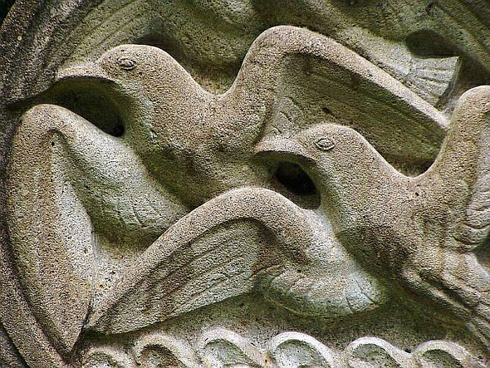 Der Titel zu diesem Relief auf einem Grabstein ist natürlich frei gewählt - er drängte sich mir beim Anblick der fliegenden Vögel förmlich auf ... |