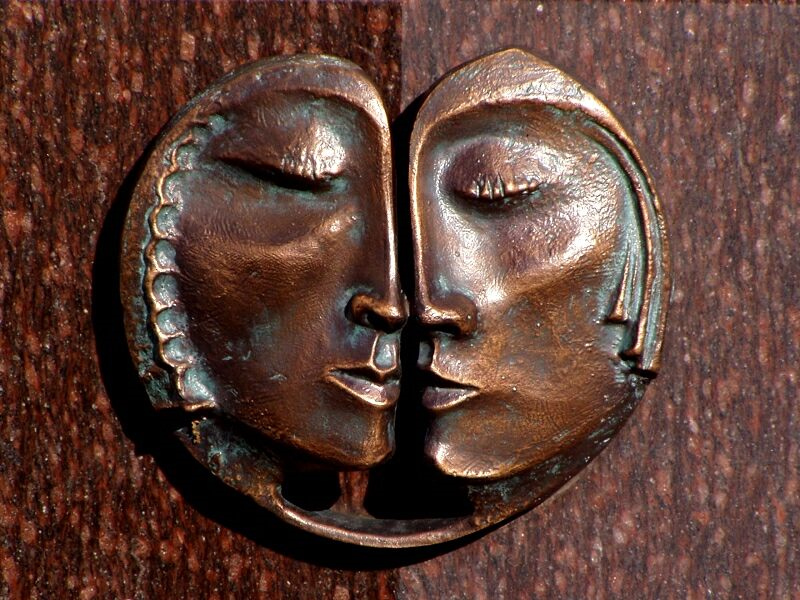 Herzliche Zuneigung ( Kupfer-Relief an einer Haustür ) Gelegenheits-Aufnahme bei einem Foto-Ausflug im Stadtteil Groß Flottbek. Weiter zu Allgemeines, Bild 27 Zurück zur Galerie Allgemeine Fotografie