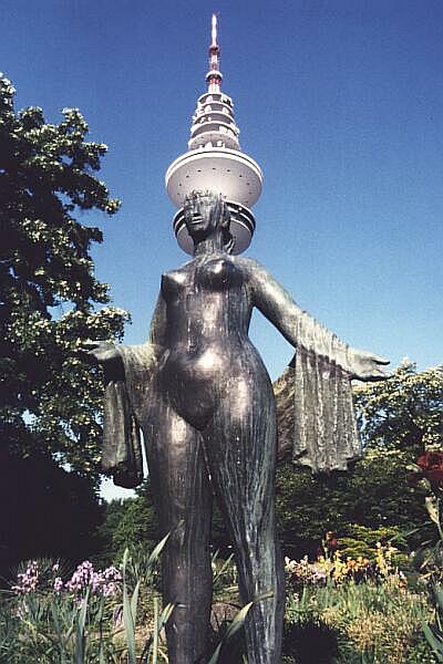 Statue mit Fernsehturm im Hintergrund