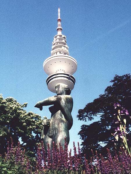 Statue mit Fernsehturm im Hintergrund