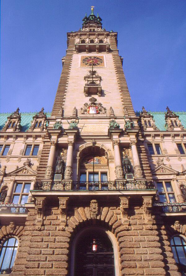 Mittelteil des Rathauses mit Portal und Turm