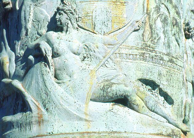 Relief am Sockel eines der beiden großen Fahnenmasten