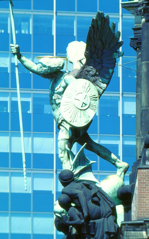 Statue des Erzengels Michael von der Seite aufgenommen
