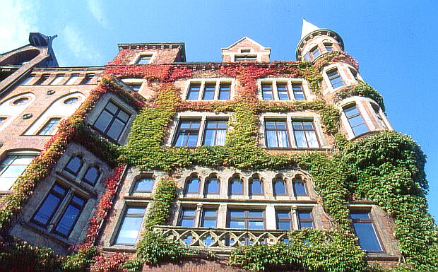 Hamburg - Speicherstadt Herbstliches Laub an einem historischen Bürogebäude Weiter zu Hamburg - Bild 77 Zurück zur Hamburg - Galerie No. 4