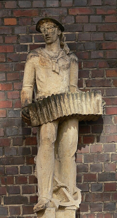 Hier dürfte es sich um einen musizierenden Matrosen handeln.