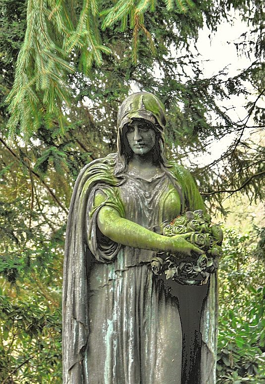 Auch diese Skulptur gehört zum historischen Teil des Ehrenfriedhofs - im Original ist das Gesicht der Frau viel dunkler, fast schwarz. Ich habe hier mit Aufhellungs-Techniken gearbeitet, damit man vom Gesicht, aber auch von den übrigen Teilen der Skulptur einen besseren Eindruck erhält. |