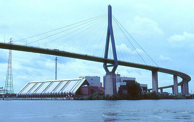Hamburg - Köhlbrandbrücke Blick vom Anleger Neuhof unter der Brücke hindurch B e s c h r e i b u n g i n K ü r z e Weiter zu Hamburg - Bild 67 Zurück zur Hamburg - Galerie No. 3